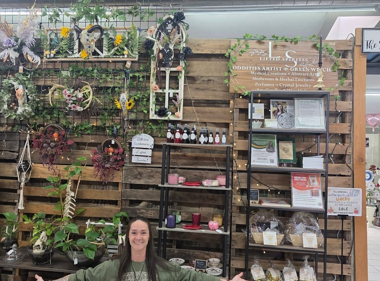 Transforming nature's beauty into mystical creations, Lifted Spiritss oddities art blends foraged elements like animal skulls, mushrooms, moss, and crystals into one-of-a-kind masterpieces. Alongside our art, we offer natural products like soy candles, mushroom tinctures, and herbal wellness items, all crafted to inspire connection, healing, and wonder in your sacred spaces.