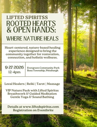 Set within the beauty of Evergreen Community Park, this immersive gathering blends guided healing practices with open time to explore and receive from a curated group of local practitioner's and energy workers hand selected by Lifted Spiritss.