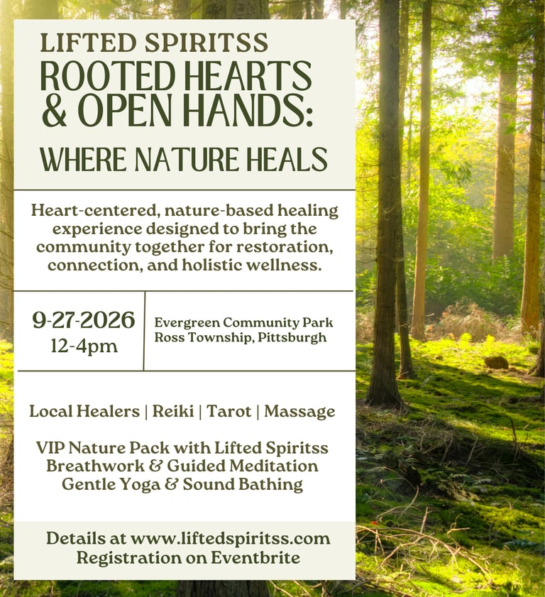 Rooted Hearts & Open Hands: Where Nature Heals is a heart-centered, nature-based healing experience created to support deep connection, nervous system restoration, and holistic well-being.